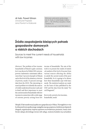 Źródła zaspokojenia bieżących potrzeb gospodarstw domowych o niskich dochodachŹródła zaspokojenia bieżących potrzeb gospodarstw domowych o niskich dochodach