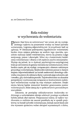 Słowa kluczowe: Rodzina , Wychowanie , Wolontariat