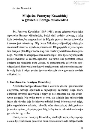 Misja św. Faustyny Kowalskiej w głoszeniu Bożego MiłosierdziaMisja św. Faustyny Kowalskiej w głoszeniu Bożego Miłosierdzia