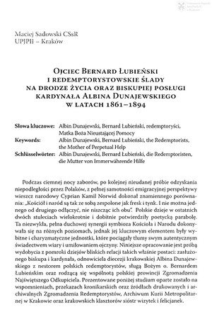 Słowa kluczowe: Łubieński, Bernard (1846-1933) , Dunajewski, Albin (1817-1894) , Redemptoryści , Matka Boża Nieustającej Pomocy