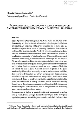 Prawna regulacja dialogu w mediach publicznych na podstawie przepisów ustawy o radiofonii i telewizjiPrawna regulacja dialogu w mediach publicznych na podstawie przepisów ustawy o radiofonii i telewizji