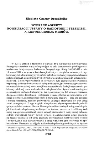 Wybrane aspekty nowelizacji ustawy o radiofonii i telewizji, a konwergencja mediówWybrane aspekty nowelizacji ustawy o radiofonii i telewizji, a konwergencja mediów