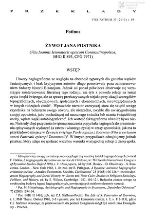 Fotinus - Żywot Jana Postnika (Vita Ioannis Ieiunatoris episcopi Constantinopoleos, BHG II 893, CPG 7971)Fotinus - Żywot Jana Postnika (Vita Ioannis Ieiunatoris episcopi Constantinopoleos, BHG II 893, CPG 7971)