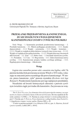Przesłanki przedawnienia kanonicznego, ze szczególnym uwzględnieniem kanonizowanej ustawy cywilnej polskiejPrzesłanki przedawnienia kanonicznego, ze szczególnym uwzględnieniem kanonizowanej ustawy cywilnej polskiej
