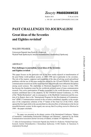 Past challenges to journalism : great ideas of seventies and eighties revisitedPast challenges to journalism : great ideas of seventies and eighties revisited