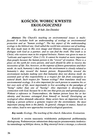 Kościół wobec kwestii ekologicznejKościół wobec kwestii ekologicznej