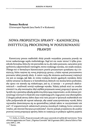 Nowa propozycja sprawy - kanoniczną instytucją procesową w poszukiwaniu prawdyNowa propozycja sprawy - kanoniczną instytucją procesową w poszukiwaniu prawdy