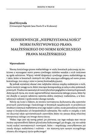 Konsekwencje "nieprzystawalności" norm państwowego prawa małżeńskiego do norm kościelnego prawa małżeńskiegoKonsekwencje "nieprzystawalności" norm państwowego prawa małżeńskiego do norm kościelnego prawa małżeńskiego
