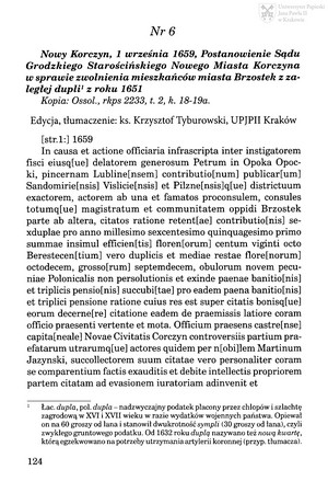 Nowy Korczyn, 1 września 1659, Postanowienie Sądu Grodzkiego Starościńskiego Nowego Miasta Korczyna w sprawie zwolnienia mieszkańców miasta Brzostek z zaległej dupli z roku 1651Nowy Korczyn, 1 września 1659, Postanowienie Sądu Grodzkiego Starościńskiego Nowego Miasta Korczyna w sprawie zwolnienia mieszkańców miasta Brzostek z zaległej dupli z roku 1651