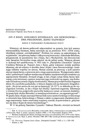Jan z Kijan, Januarius Sovizralius, Jan Dzwonowski - dwa pseudonimy, jedno nazwisko? : rzecz o tożsamości plebejskiego poetyJan z Kijan, Januarius Sovizralius, Jan Dzwonowski - dwa pseudonimy, jedno nazwisko? : rzecz o tożsamości plebejskiego poety