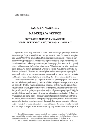 Sztuka nadziei, nadzieja w sztuce : powołanie artysty i misja sztukiw refleksji Karola Wojtyły – Jana Pawła IISztuka nadziei, nadzieja w sztuce : powołanie artysty i misja sztukiw refleksji Karola Wojtyły – Jana Pawła II