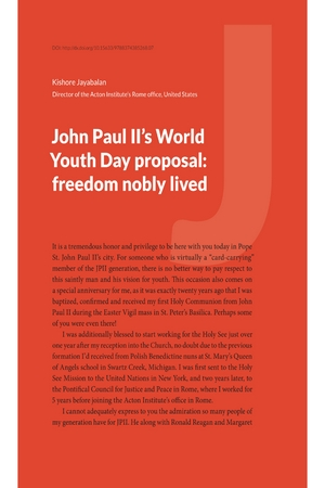 John Paul II’s World Youth Day proposal : freedom nobly livedJohn Paul II’s World Youth Day proposal : freedom nobly lived