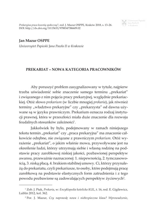 Mazur, Jan (1955-) Red., Prekaryjna praca kwestią społeczną?