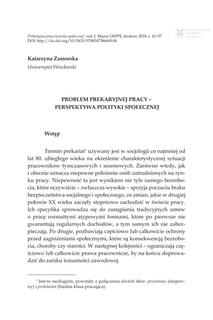 Problem prekaryjnej pracy : perspektywa polityki społecznej