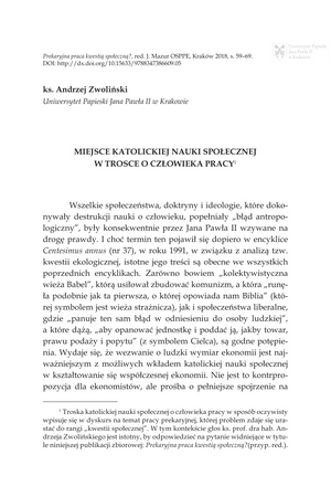 Miejsce katolickiej nauki społecznej w trosce o człowieka pracy