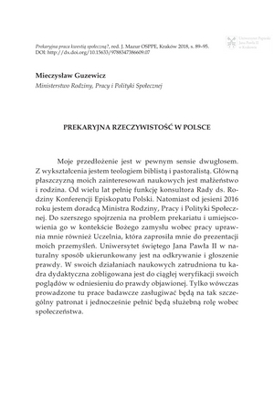 Słowa kluczowe: Prekaryzacja pracy , Polityka społeczna