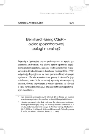 Bernard Häring CSsR - ojciec (po)soborowej teologii moralnej?Bernard Häring CSsR - ojciec (po)soborowej teologii moralnej?