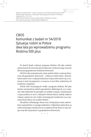 Komunikat z badań nr 54/2018 : sytuacja rodzin w Polsce dwa lata po wprowadzeniu programu Rodzina 500 plusKomunikat z badań nr 54/2018 : sytuacja rodzin w Polsce dwa lata po wprowadzeniu programu Rodzina 500 plus
