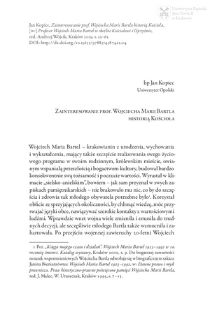 Zainteresowanie prof. Wojciecha Marii Bartla historią KościołaZainteresowanie prof. Wojciecha Marii Bartla historią Kościoła