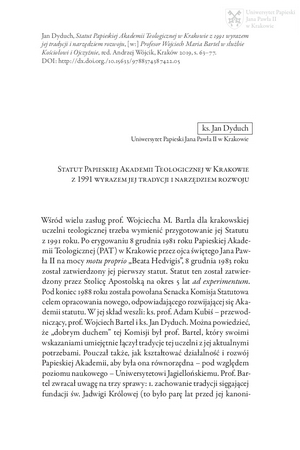 Statut Papieskiej Akademii Teologicznej w Krakowie z 1991 wyrazem jej tradycji i narzędziem rozwojuStatut Papieskiej Akademii Teologicznej w Krakowie z 1991 wyrazem jej tradycji i narzędziem rozwoju