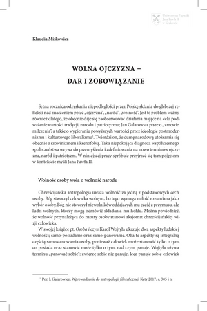 Słowa kluczowe: Niepodlrgłość , Naród , Patriotyzm , Ojczyzna , Definicje , Jan Paweł II (papież ;1920-2005)