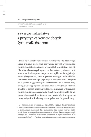 Zawarcie małżeństwa z przyczyn całkowicie obcych życiu małżeńskiemuZawarcie małżeństwa z przyczyn całkowicie obcych życiu małżeńskiemu
