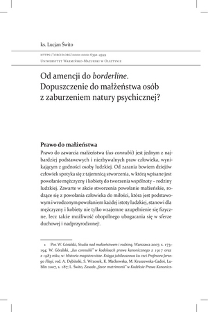 Od amencji do borderline. Dopuszczenie do małżeństwa osób z zaburzeniem natury psychicznej?Od amencji do borderline. Dopuszczenie do małżeństwa osób z zaburzeniem natury psychicznej?
