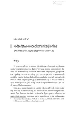 Słowa kluczowe: Rodzina , Rodzeństwo , Komunikacja , Cyberprzestrzeń , Portale społecznościowe