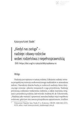 „Kiedyś nas zastąpi” – nadzieje i obawy rodziców wobec rodzeństwa z niepełnosprawnością„Kiedyś nas zastąpi” – nadzieje i obawy rodziców wobec rodzeństwa z niepełnosprawnością