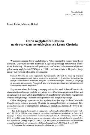 Teoria względności Einsteina na tle rozważań metodologicznych Leona ChwistkaTeoria względności Einsteina na tle rozważań metodologicznych Leona Chwistka