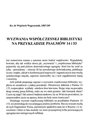 Wyzwania współczesnej biblistyki na przykładzie Psalmów 14 i 53Wyzwania współczesnej biblistyki na przykładzie Psalmów 14 i 53